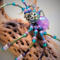 I attach all the legs first, then bead each one individually. I don’t pre-plan the pattern; I bead the legs as inspiration hits. A tiny dab of glue helps secure the legs near the body, and I finish each girl with a jump ring so she can hang beautifully.